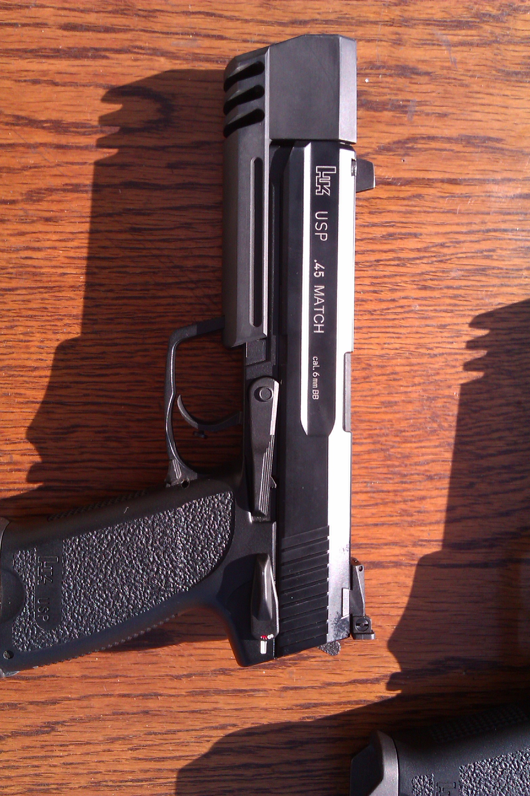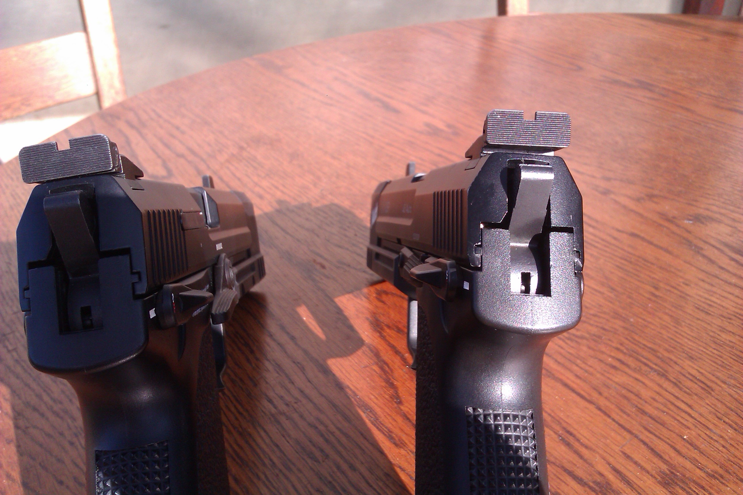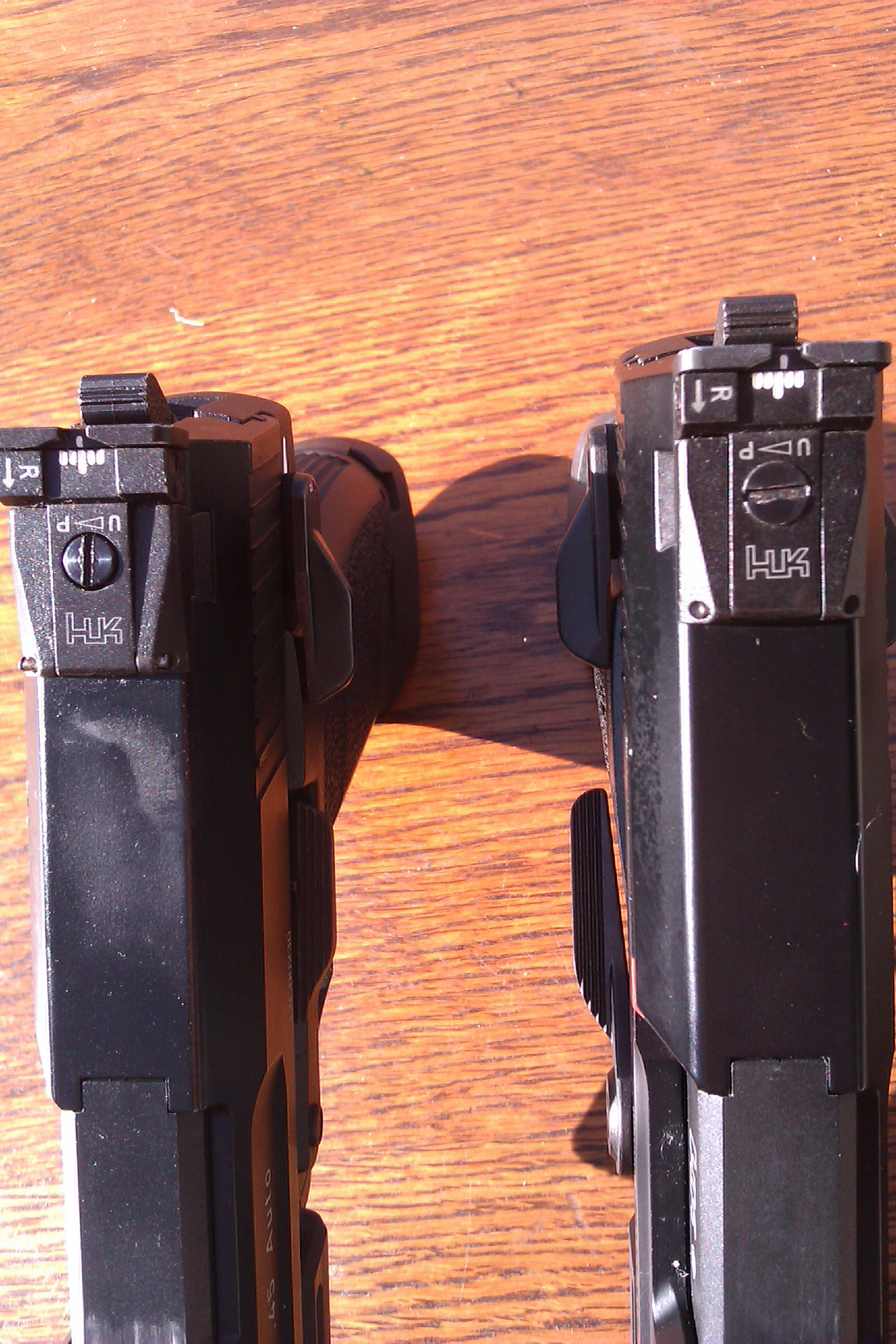 Děkuji za fotky i zkušenosti s vašimi zbraněmi, je vidět že to mají všechny USP stejně, tedy zadní mířidlo musí být o dost výš než přední, hlaveň prostě směřuje lehce dolů. Zkusím vyměnit šroub a dát silnější pružinu, aby se mířidlo nehýbalo. Jinak hlaveň poškrábanou nemám, trubička byla velmi jemně broušená a navíc duralová, ta ocelovou hlaveň poškrábat nemůže Je to trochu škoda, u nové verze bych takovou chybu v návrhu nečekal, ale evidentně to nemá moc vliv na funkci. Uvídím časem jestli s tím budu dělat ještě něco jiného než úpravu mířidel. Ještě že jsem vzal tactical verzi, ty štelovatelné mířidla jsou super věc