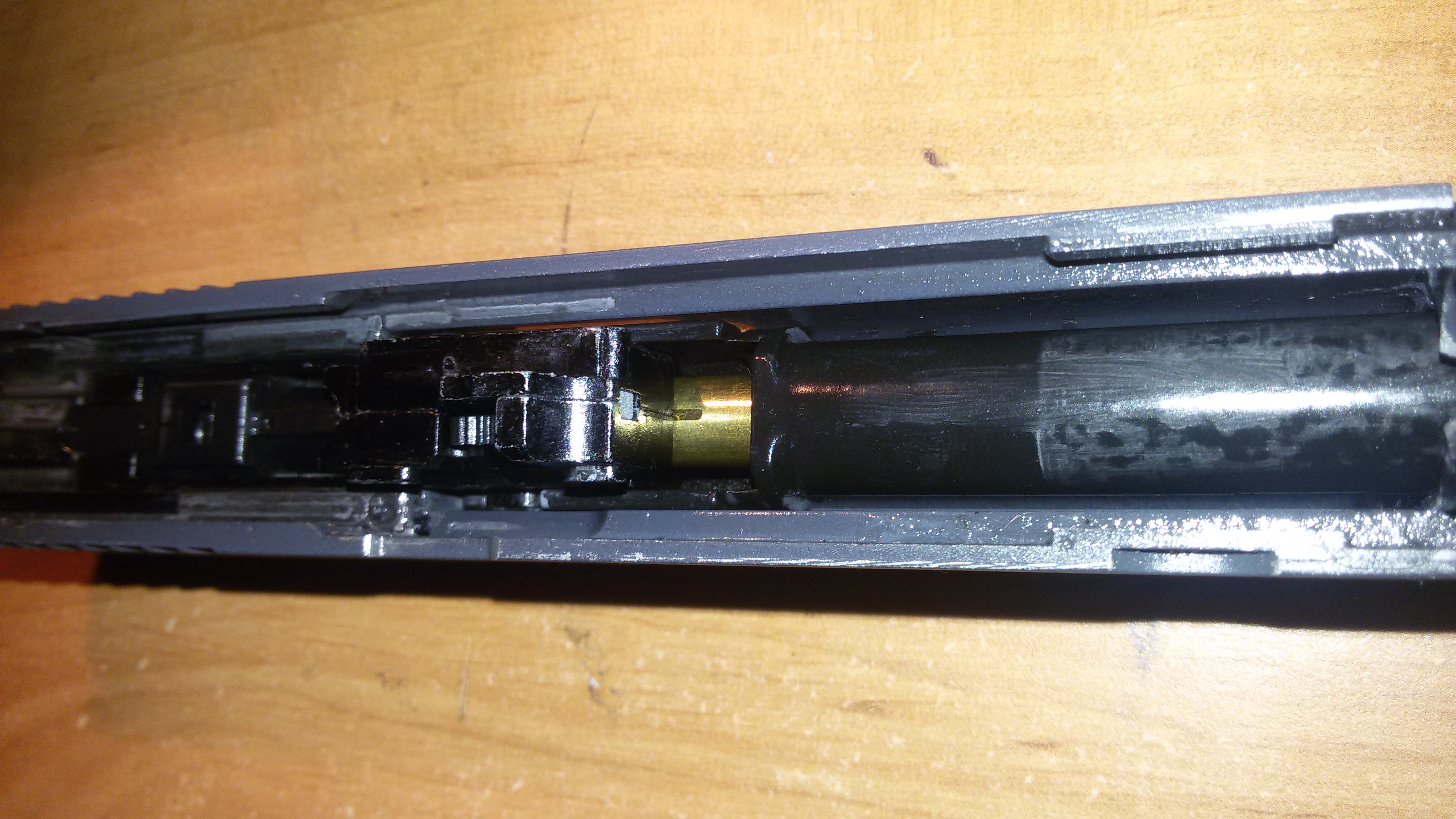 Sú dva možnosti kúpa novej komory a tej tyčky cca 40-60USD alebo to nechať tak nemá to žiadny vplyv na funkčnosť zbrane tiež mám ten kolík ulomený.