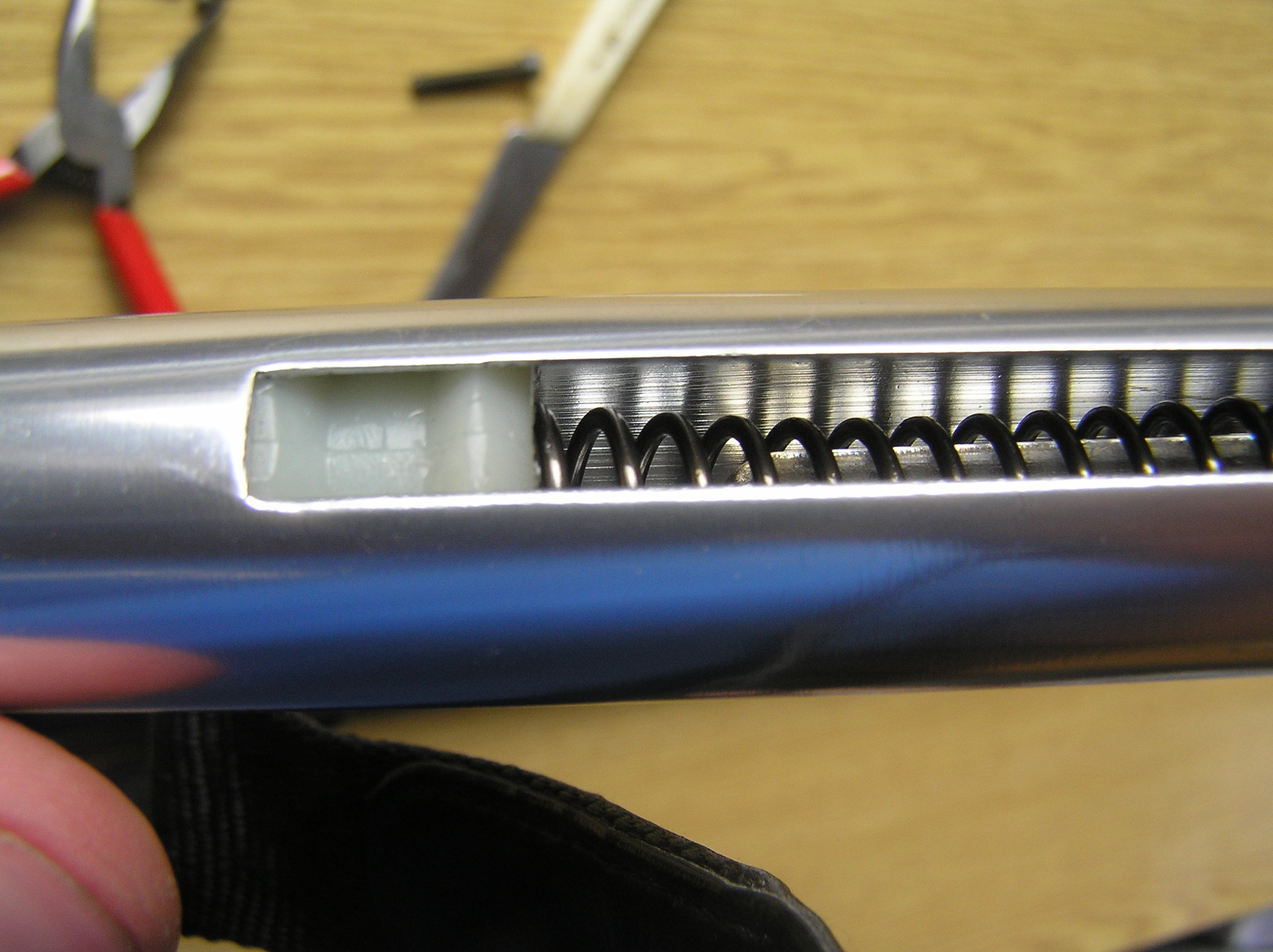Můžeš mít poškozený spouštový mechanizmus ,nebo hranu na pístu. Zkontroluj, jestli tam máš zarážku pružiny :wink: