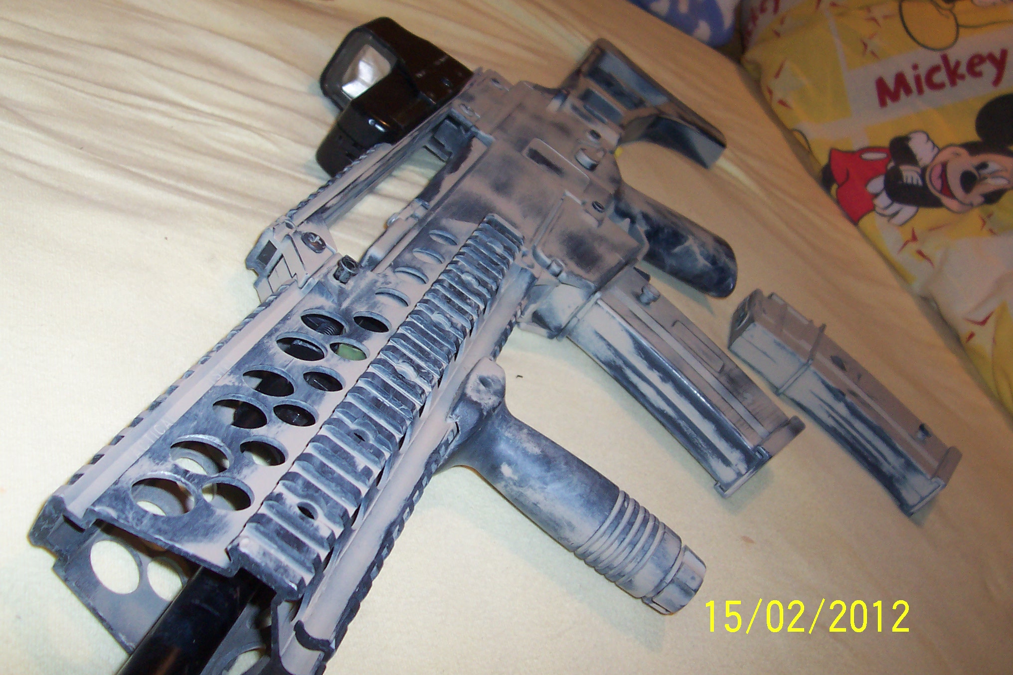 A jaký kvér chceš maskovat? Nebyla by na to třebas lepší UCP páska? U US Army se na to normálně používalo. Měli zakázáno stříkat kvéry barvama. Nevím jak je tomu nyní