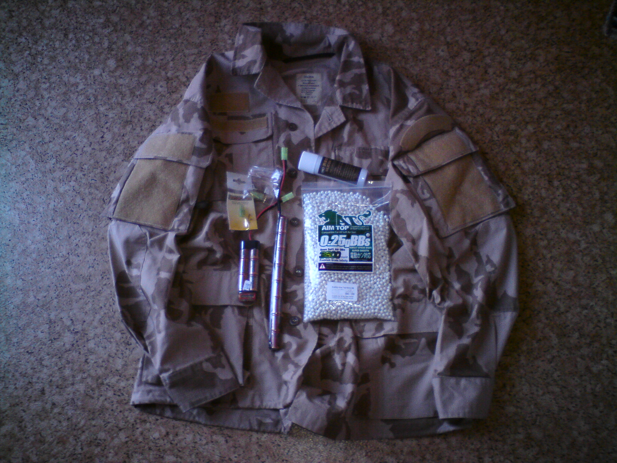 Pouštní modernizovaná blůza, silikáč, nějaký konektory, AimTopový pětadvacítky a baterky. Teď už jenom počkat na tlačáky.