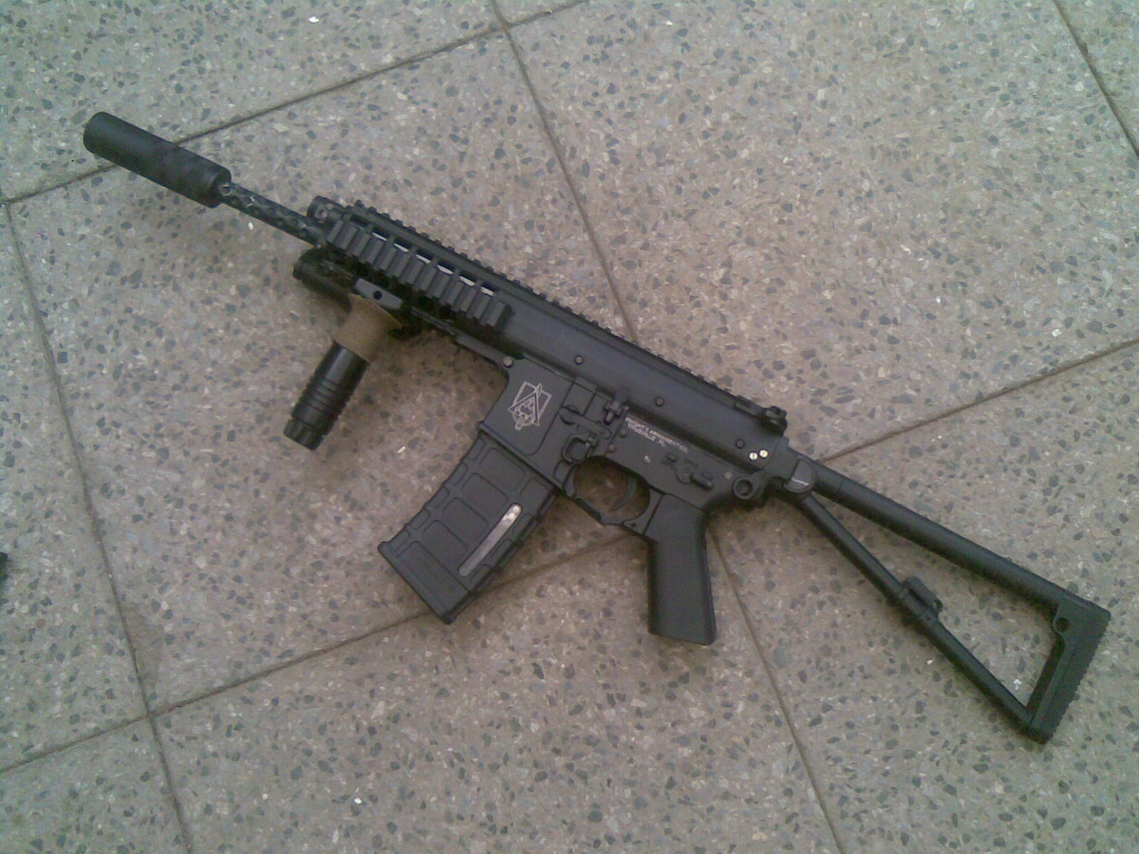 KAC PDW Koupeno jako šrot s ulomenou hlavní a pažbou i s kusem spodní části těla bez většiny dílů. Opravou jsem strávil nekonečnýh 14 hodin v dílně, ale teď je jak novej  Ba ještě lepší  Dostal jsem k tomu tlumič od ASpro, origo mag a Pmag. Cena taková, že vám ji ani nemůžu říct, protože bych vás akorát nasral.  Příloha: