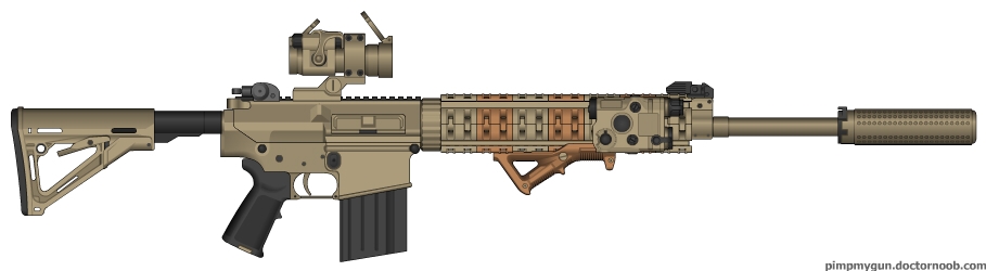 Takhle by to moje SRko nevypadalo vůbec špatně  akorát tam nemají magpul magazine SR25...jinak nedivte se tomu kolimátoru - u airsoft SRka mi přijde optika fakt zbytečná ačkoliv bych tam rád měl M3. Ale použitelnost minimální. P.S. jen jak budou mít XTM rail krytky, tak je tam prásknu