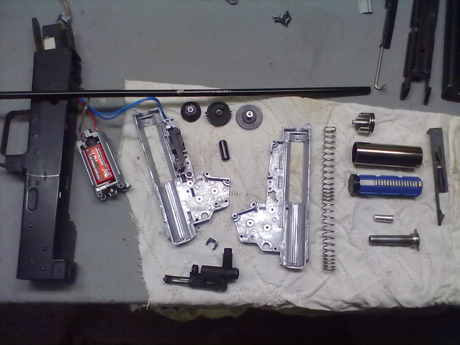 Uvnitř: motor se silným kroutícím momentem (aimtom) ocelové kola (guarder) kovove loziska, zalepené ocelový trn (guarder) válec a hlava válce (guarder) píst s celokovovým hřebenem (SHS) hliníková tryska s těsněním (airsoftpro) HopUp gumička (guarder) mosfet (jefftron) hlaveň 6,03 mm (madbull)