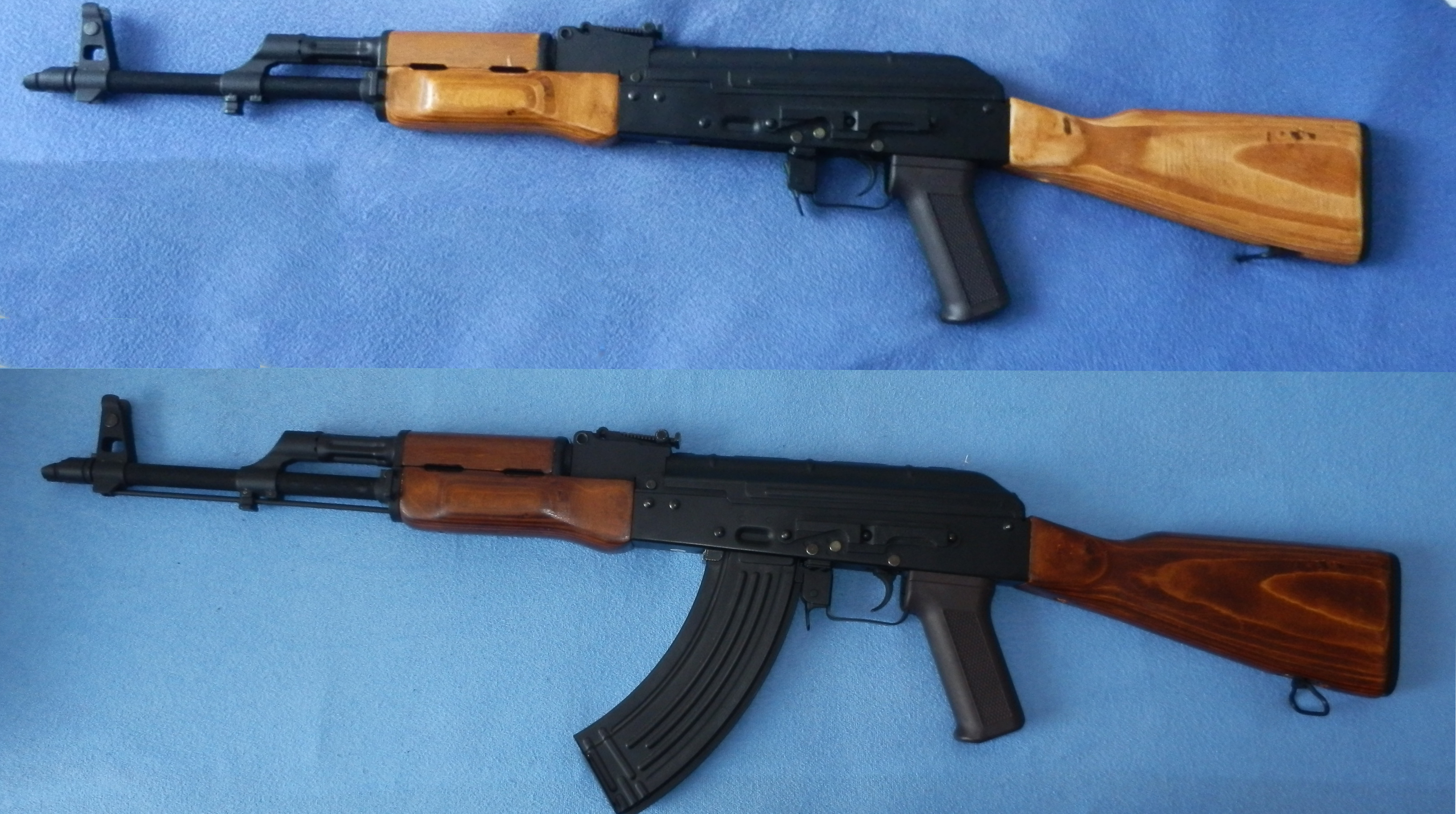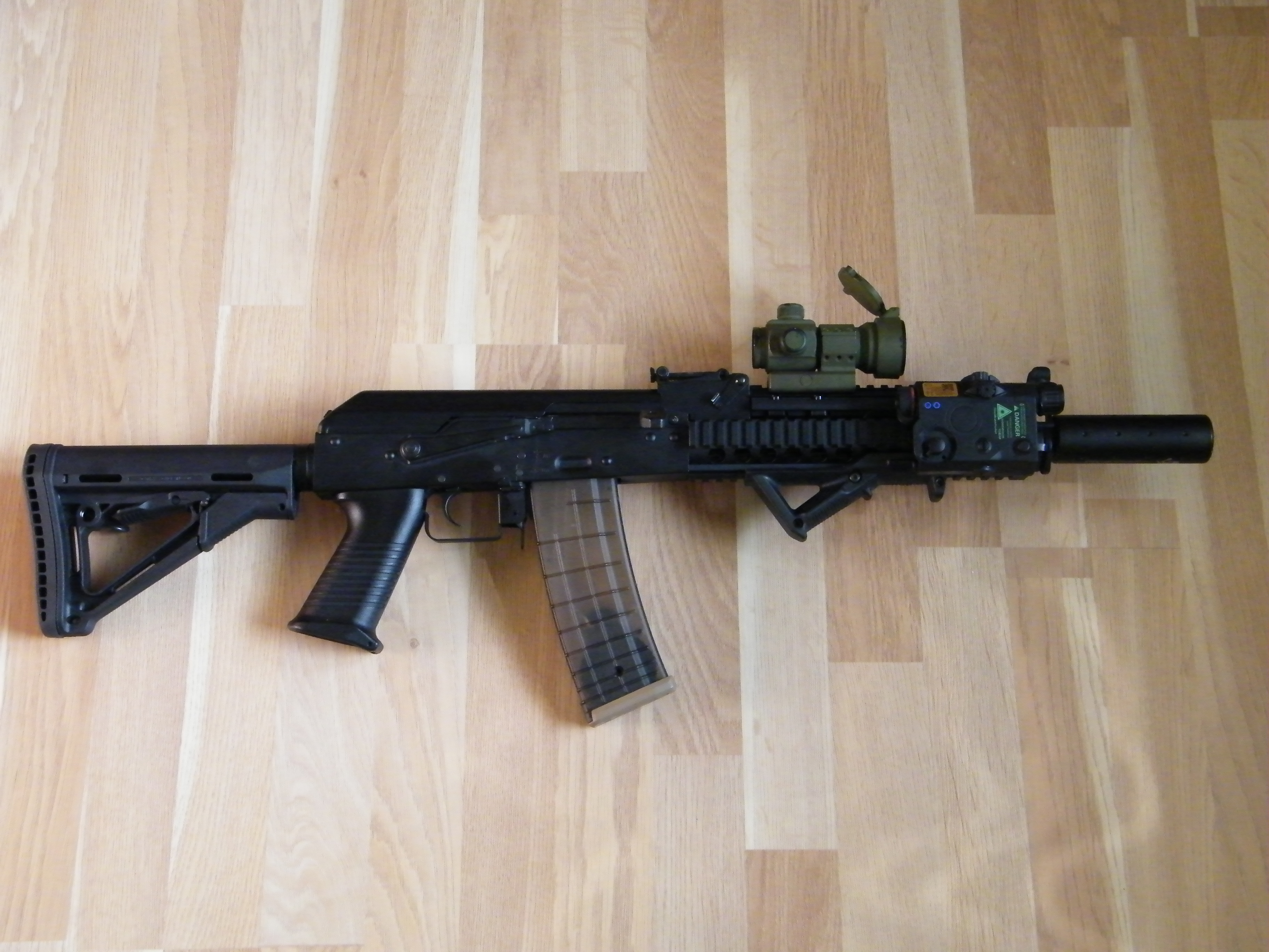 Dokončený ,,AK" vnějšek: Pažba z rýče, zakracený předek, custom předpažbí, odrbaná barva, zrezlý tělo, pár metrů nepořebného kabelu, svázaný magy.. Vnitřek 100ka, jeftron miskromosfet, SHS 13:1 (short stroke) SHS píst, power hlava,aspro tryska, GP hop... Příloha: