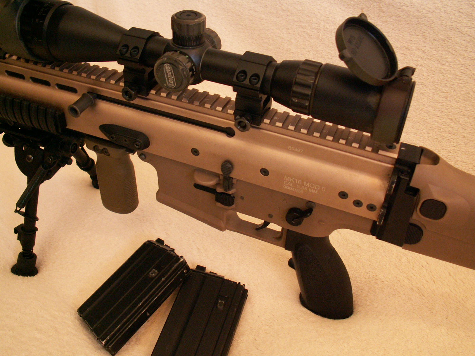 lubav: Kráska, co je to za předpažbí? Nevěděl jsem, že Midwest Ind. nechává dělat airsoft kopie. Abych něčím přispěl, má záliba na posledních několik měsíců WE SCAR-L SV. Příloha: