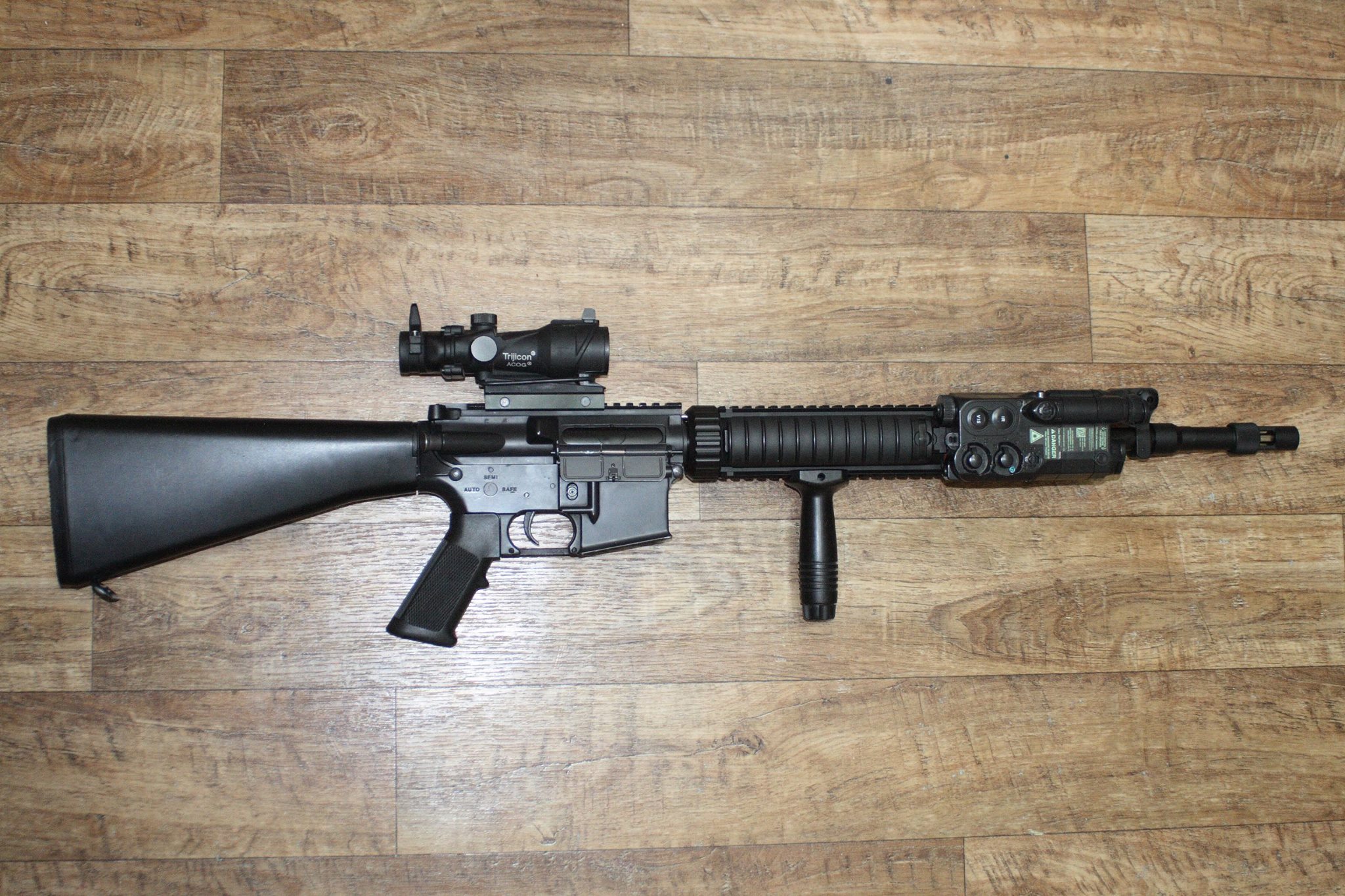 Moje aktualne zlaticka DB M4 - prerobena na wannabe C8 Diemaco ( chyba rucka a kratsia hlaven o kusok ), komplet vykuchane a prerobene vnutro M16A3 s M203 - od E&C