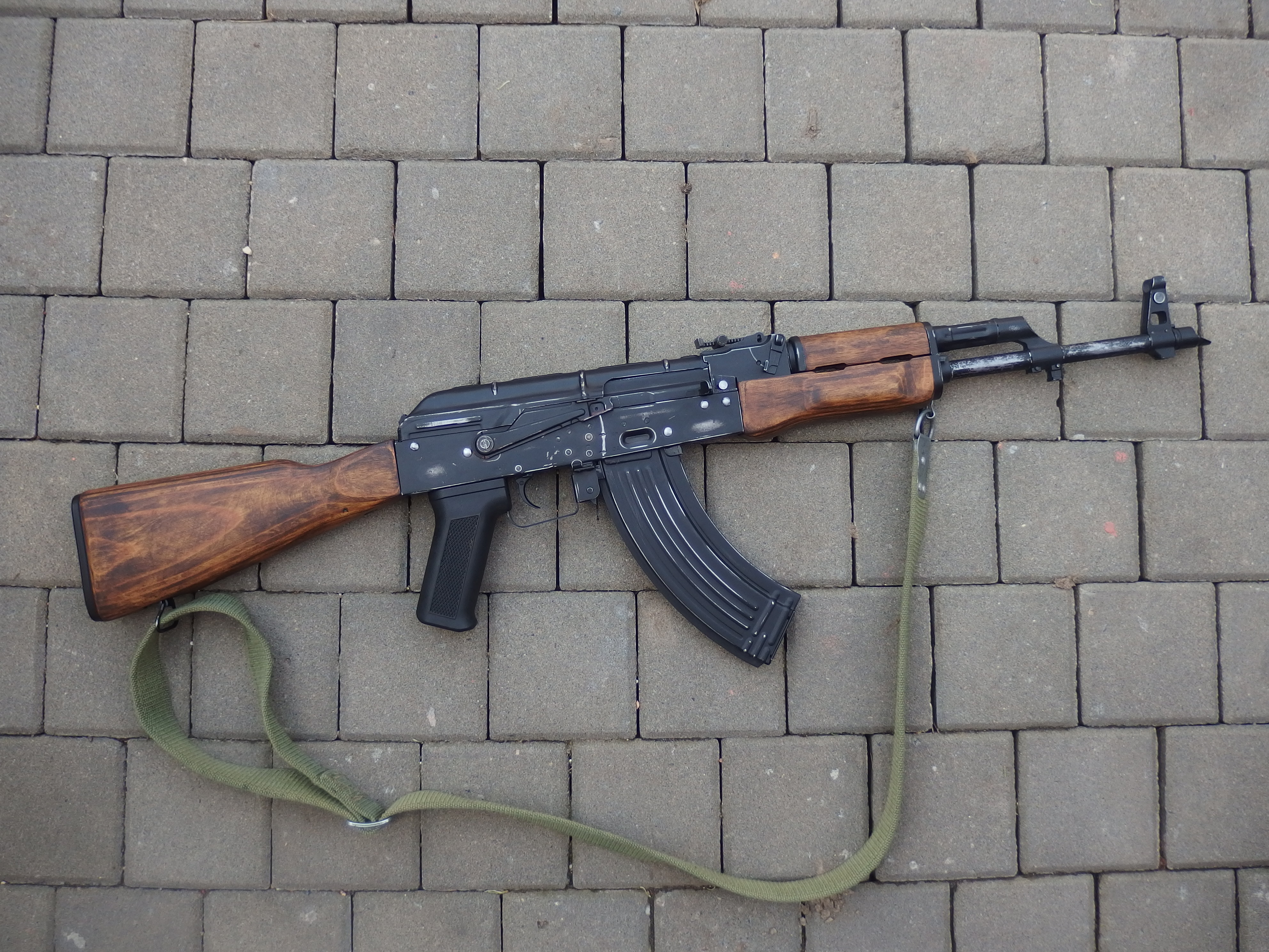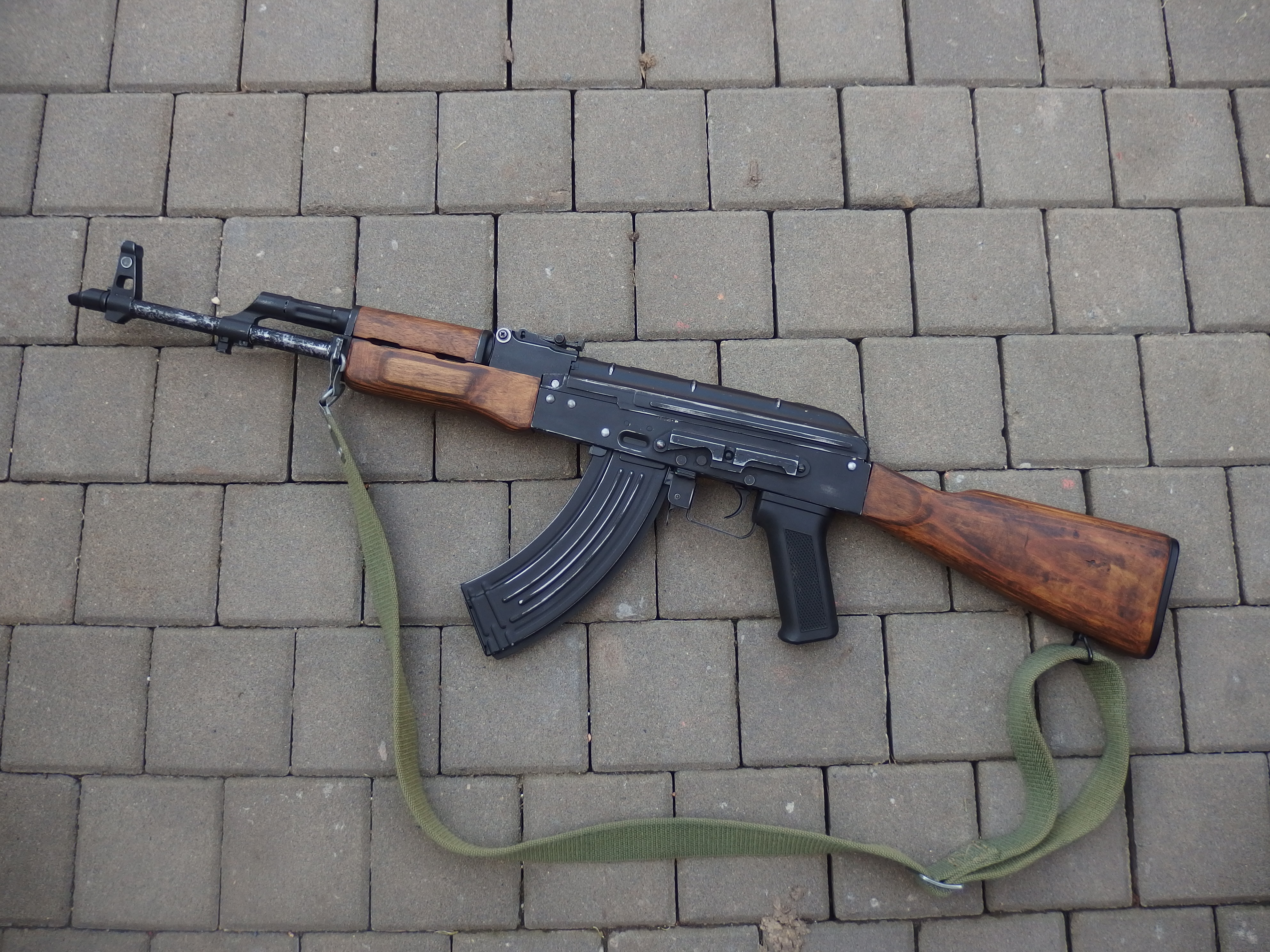 Cyma AKM CM.048 Dřevo obroušeno, namořeno do přirozenějších barev. Patina od hrubšího používání. Příslušenství je pouze ruský popruh  PBS vzduchotechnika Sorbopad na hlavě válce Custom tryska 19,7mm Maple leaf gumička 60° G&G 460mm hlaveň SHS M130 SHS 14zubý lehký válec Jefftron mikro mosfet 140m/s