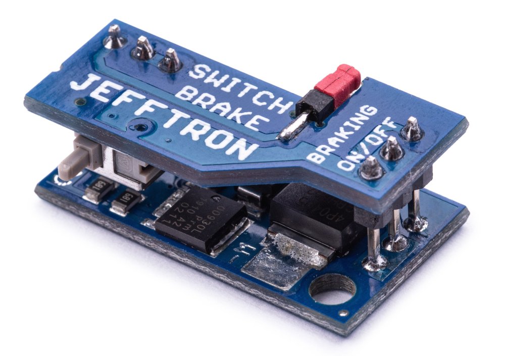 Unikátní Switch brzda, která se vkládá dovnitř mechaboxu V2, je právě v prodeji v jefftron obchodě. Zařízení je navrženo pro výměnu za mikrospínač u specifického mechaboxu V2 bez další úpravy. Aktivní brzda se dá jednoduše vypnout vytažením červené propojky, vznikne z toho mosfet.
