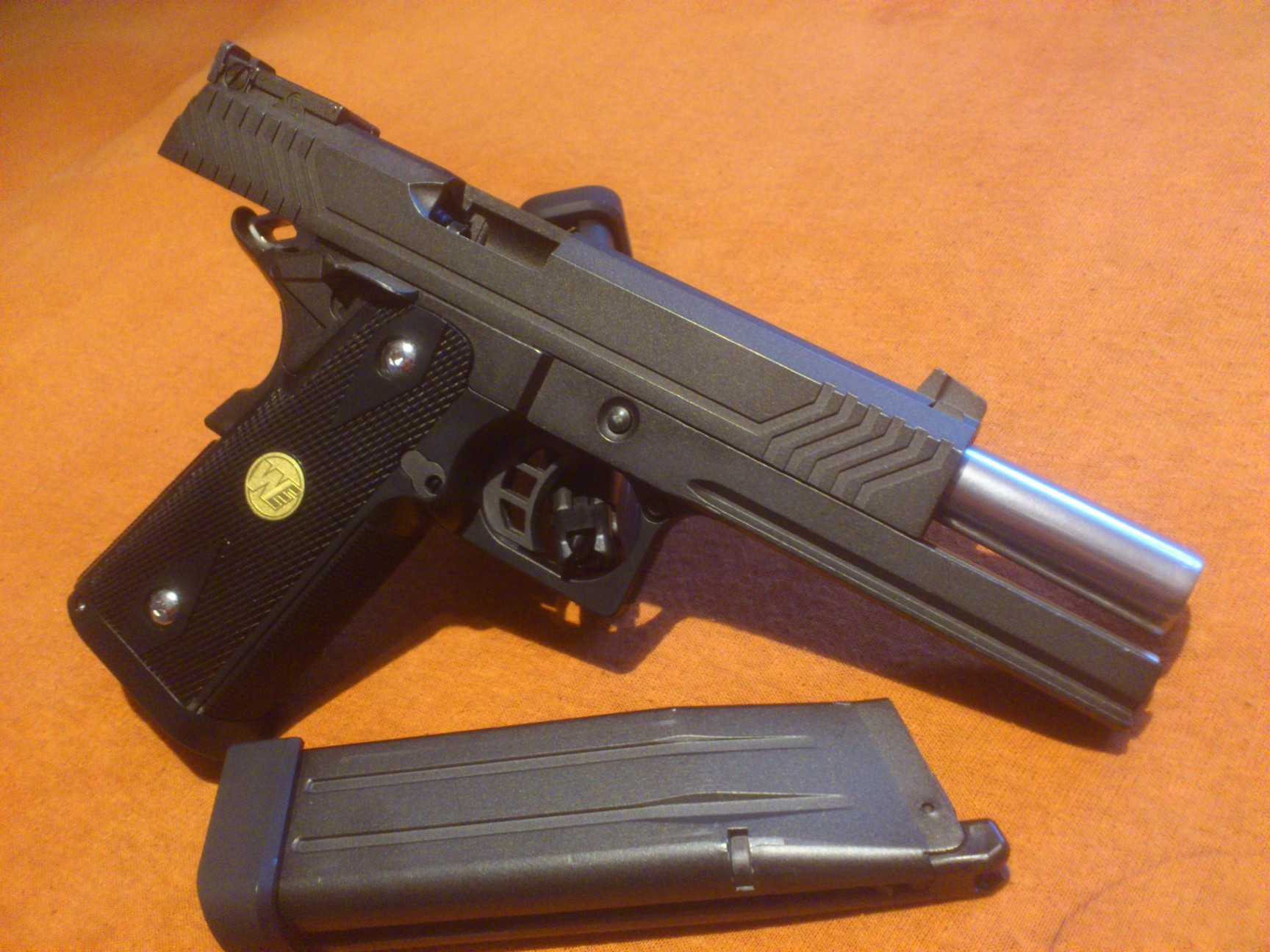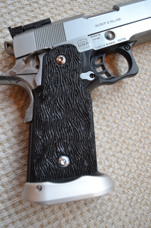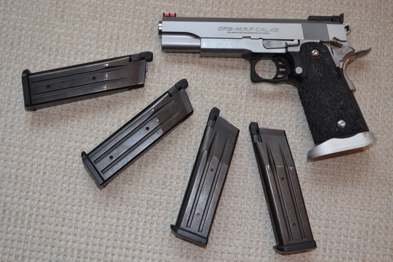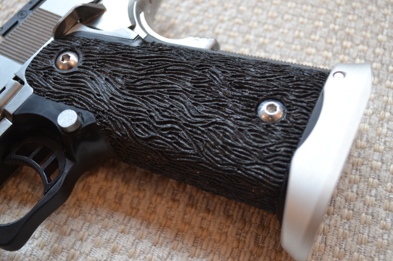 Hi-Capa 5.1 chrom Originální povrchovka kovových částí nic nevydrží, v současnosti jsou všechny kovové díly začištěny od otřepů, okartáčovány a vyleštěny dremlíkem. Klasické úpravy gripu v oblasti lučíku, původní povrch opájkován, doplněny šroubky a magwell. Co se týká ostatních úprav, tak prozatím skromně, upraveny originální ventily v zásobnících, zásobníky dostaly fialové gas route nineball. Světlovodná muška, odlehčený plug a 150% bicí pružina, momentálně je instalována originální vratná pružina, se silnější a plynem 144a nefungovalo stoprocentně nabíjení. Zip