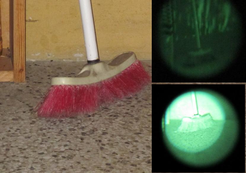 Rozhodl jsem se sepsat recenzi nočního vidění Yukon Spartan 3x42. Tento monokulární přístroj se prodává v cenové hladině do 10000Kč a podle mně je takovým typickým představitelem první generace nočního vidění. Důvodem pro tuto recenzi nebyl ani tak přístroj samotný, jako spíše představení možností a omezení první generace. Na Internetu se můžeme setkat s doporučeními typu "generace 1 je k ničemu, kup si minimálně generaci 2", ale často bez bližšího vysvětlení důvodů pro toto tvrzení. Tato recenze by měla pomoci potencionálním kupcům nočního vidění v rozhodování, jaký typ přístroje bude pro ně optimální. Jak můžete vidět na přiložené fotografii, Spartan je velmi kompaktní a vejde se do kapsy u kalhot. V zadní části je okulár, který je otočný a lze s ním obraz doostřit. Nahoře je spouštěcí tlačítko a tlačítko aktivace přísvitu. V přední části je otočná optika s gumovou záslepkou, která by neměla by neměla být snímána za denního světla. Vedle optiky je kryt baterie a světlo přísvitu. Na spodní části jsou dva závity pro připevnění na jiné zařízení. Slabým místem generace jedna je možnost zničení přístroje silným zdrojem světla, který posvítí do nezakryté optiky. Dle vyjádření Yukonu by zařízení mělo mít zabudovánu jakousi ochranu proti tomuto přesvícení. Na jednu baterii by měl být Spartan schopen provozu po dobu přibližně čtyř hodin. Přístroj není voděodolný, ale chvilkové vystavení dešti nebo vlhku mu nevadí. Na co je však citlivý, jsou silné otřesy nebo pád. Při tom by mohlo dojít ke zničení vnitřních komponentů. Nyní k praktickým zkušenostem: Na přiložené fotografii s automobily můžete vidět obraz, který byl pořízen přes Yukon za měsíčné noci (tedy s dostatkem světla) na vzdálenost asi 15 metrů. Přísvit nebyl použit. Je to takový typický obrázek generace jedna. Ve střední partii je obraz ostřejší a čím více ubíhá k okrajům, tím je obraz rozmazanější a linie se lámou (tzv. efekt rybího oka). Celkově je obraz zašuměný a postrádá drobné detaily, ale pro orientaci v terénu je dostatečný. Velkým nedostatkem první generace je ten zmíněný efekt rybího oka. Pokud budete např. ležet a přístrojem hledat nepřítele v křoví před vámi, je vše relativně v pořádku. Problém nastane v okamžiku, kdy se budete chtít podle přístroje orientovat při chůzi. Ubíhající linie v okuláru budou vašemu oku dávat falešné informace a vy budete minimálně vrávorat, v horším případě se vám může udělat i špatně. Opravdové řešení tohoto efektu a i zašumění obrazu přináší až vyšší generace nočních vidění. Použijete-li za měsíčné noci přísvit, objekty se rozjasní a rozeznáte více detailů. Opět zde má první generace jeden neduh a tím je přesvícení blízkých objektů. Objekty ve vzdálenosti do 10 metrů v okuláru nepříjemně, skoro až nesnesitelně září. V případě tohoto přístroje přísvit postrádá smysl u vzdáleností nad 30 metrů, kde už světlo nemá dostatečný výkon. Lze to samozřejmě řešit externím zdrojem červeného světla, ale je nutné upozornit na to, že všechna tato světla jsou vidět a nepřítel vás může díky nim odhalit. Mám osobní zkušenost, kdy jsem takové světlo viděl na desítky metrů. Na obranu přísvitu na nočním vidění musím říct, že je vidět pouze, když světlo míří přímo na vás. Jakmile míří trochu jiným směrem, lehce ho přehlédnete. Další problém s první generací nastává s úbytkem přirozeného zdroje světla – měsíc nesvítí a noc je temná. Tehdy se dostanete do situace, kdy už si bez přísvitu neškrtnete, protože obraz v okuláru je mdlý a nejasný. Ale stále je toto vidění ještě použitelné. Příklad takové situace můžete vidět na fotografii se smetákem. Byla pořízena v docela temné noci, takže obraz bez přísvitu (nahoře vpravo) už moc informací neposkytuje. S přísvitem (dole vpravo) smeták vidíte jasněji, ale vzhledem k blízké vzdálenosti zde můžete vidět ono zmíněné přesvícení objektů. Opravdu velký problém generace jedna nastává v úplné tmě. Tam už v hledáčku nevidíte bez přísvitu nic než šumění/zrnění a neustálým používáním přísvitu lehce prozradíte svoji pozici. Jak toto vše shrnout? Prostě za kvalitu se stále ještě musí zaplatit dost peněz. Pro opravdu slušný obraz se musíte přehoupnout přes hranici 20000Kč do úrovně generací 2. To je řešení pro ty, kteří noční vidění používají intenzivně a i s ním pochodují. Pro ty ostatní je tu generace jedna se všemi svými nedostatky. Stále je však podle mě lepší mít nějaké noční vidění než žádné.