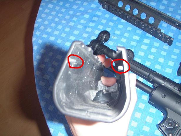 Zdravim, mám MP5tku od cyma, verze 0.41B (kovové tělo, RIS předpažbí) Od kámoše sem si půčil na vyzkoušení Předpažbí od CA se svítilnou (líbí se mi víc než to RISkový) a nastal problém. Jak je vidět na fotkách, v předpažbí jsou 2 výstupky které mi zabraňují předpažbí nasunout rovně, jde to jenom tak podivně šikmo jak je to na 3 obrázku. Řešení by bylo asi upilovat ty výběžky, ale nechci kamarádovi ničit jeho věci, tak se ptám: setkal jste se někdo s podobným problémem? Je moje MP5 něják nestandardní?