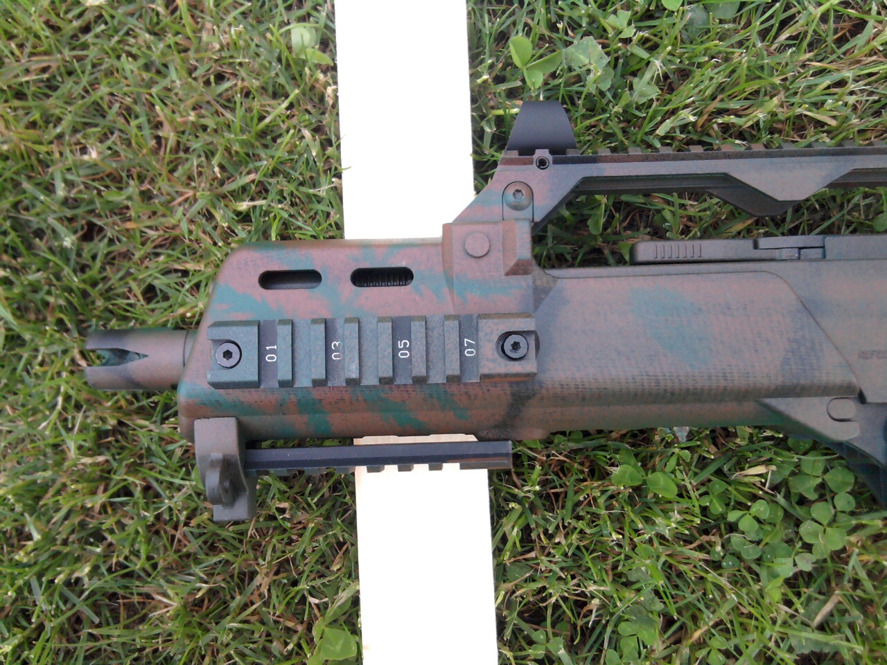 Vanhouten: barvičky krásný, jen bych doporučil hodit fastex na předpažbí, takhle by u reálný zbraně neměl být, změnil by vibrace hlavně a zhoršil rozptyl(teda vypadá to, že ho máš chycenej za hlaveň, pokud ne, jako bych nic neřekl  ).. Případně pořídit/stvořit něco takového: http://www.redtacgear.com/viewtopic.php?f=6&t=7