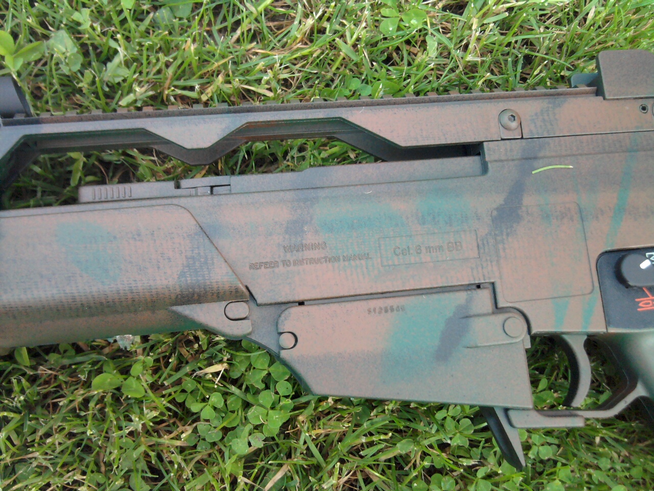Nástřik hezkej, ale ta optika na tom vypadá děsně, ten kus hadru kolem hlavně taky a zásobník taky žádnej zázrak...z mýho pohledu ještě je co vylepšovat