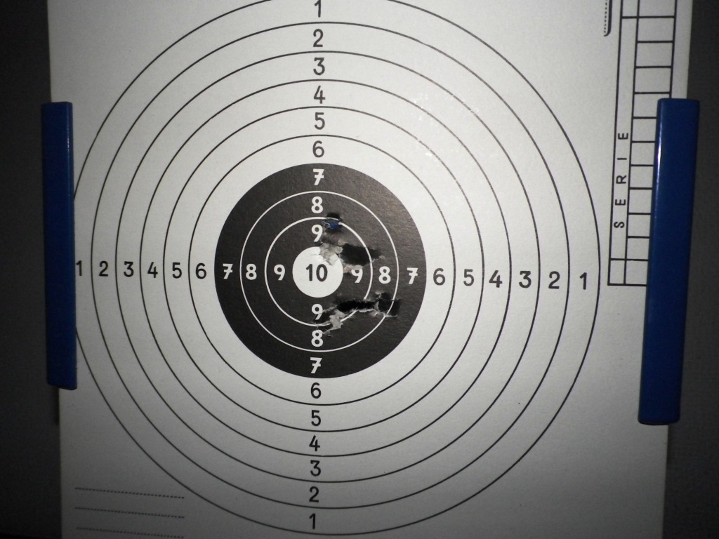 Severan - klobouk dolů před Tvou ochotou pomoct a taky před kvalitou fotek... Psal jsi, jestli můžu hodit terč. Fláknul jsem narychlo 2x6 ran na vzduchovkový terč na 6 metrů. Ten horní a severozápadní úlet do 6 a 7 bylo prvních 6 ran po naplnění zásobníku. Mám zatím dojem, že je lepší ho plnit v kratších dávkách, aby bez problému vystřílel těch 30 ran místo 45 - první rány s čerstvým zásobníkem mají citelně větší blowback a lítají nepřesněji. Navíc ještě nebylo šáhnuto na hop-up, takže bych ten terč nebral jako definitivní vizitku zbraně  Průměr devítky je 2,4 cm.