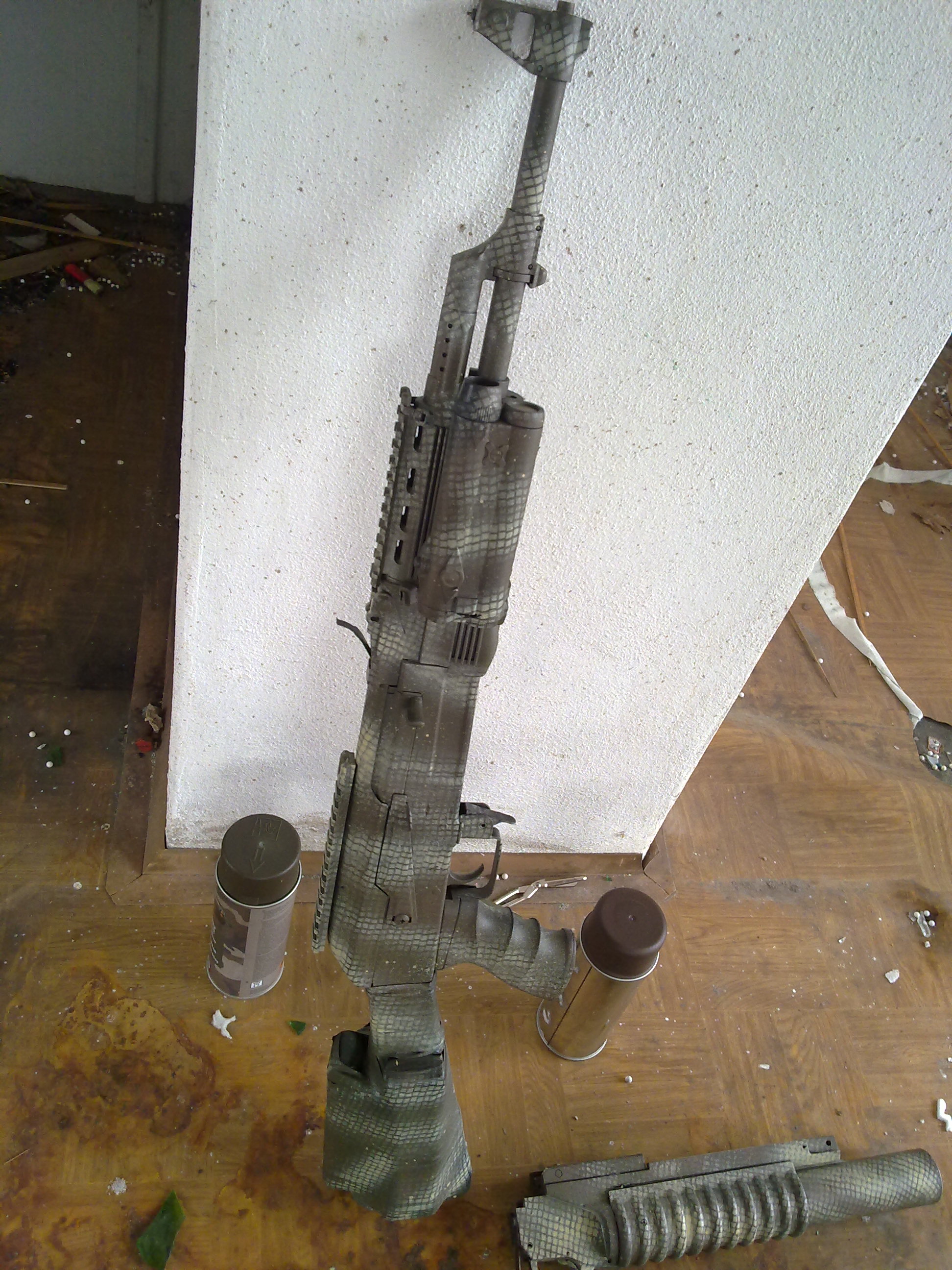 4All: jinak muzu-li pridat svych par tipu k maskovani zbrani, pri pouzivani spreju zkuste pouzit sablony (at uz trsy travy, hranu papiru, nejaky radisuovy sablony a pod) tak,ze je na kver nepolozite,ale drzite nad povrchem...cim vetsi odskok sablony,tim jemnejsi prechody, respektive vic rozpita cara.