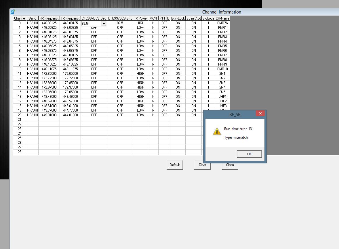 Chlapi jde vám někomu naprogramovat PMR frekvence rovnou s podkanálem?Chtěl sem si nastavit teamovou frekvenci s ctcss a když ho zadám tak program hodí runtime error a spadne  //Tak Chirp to pobral