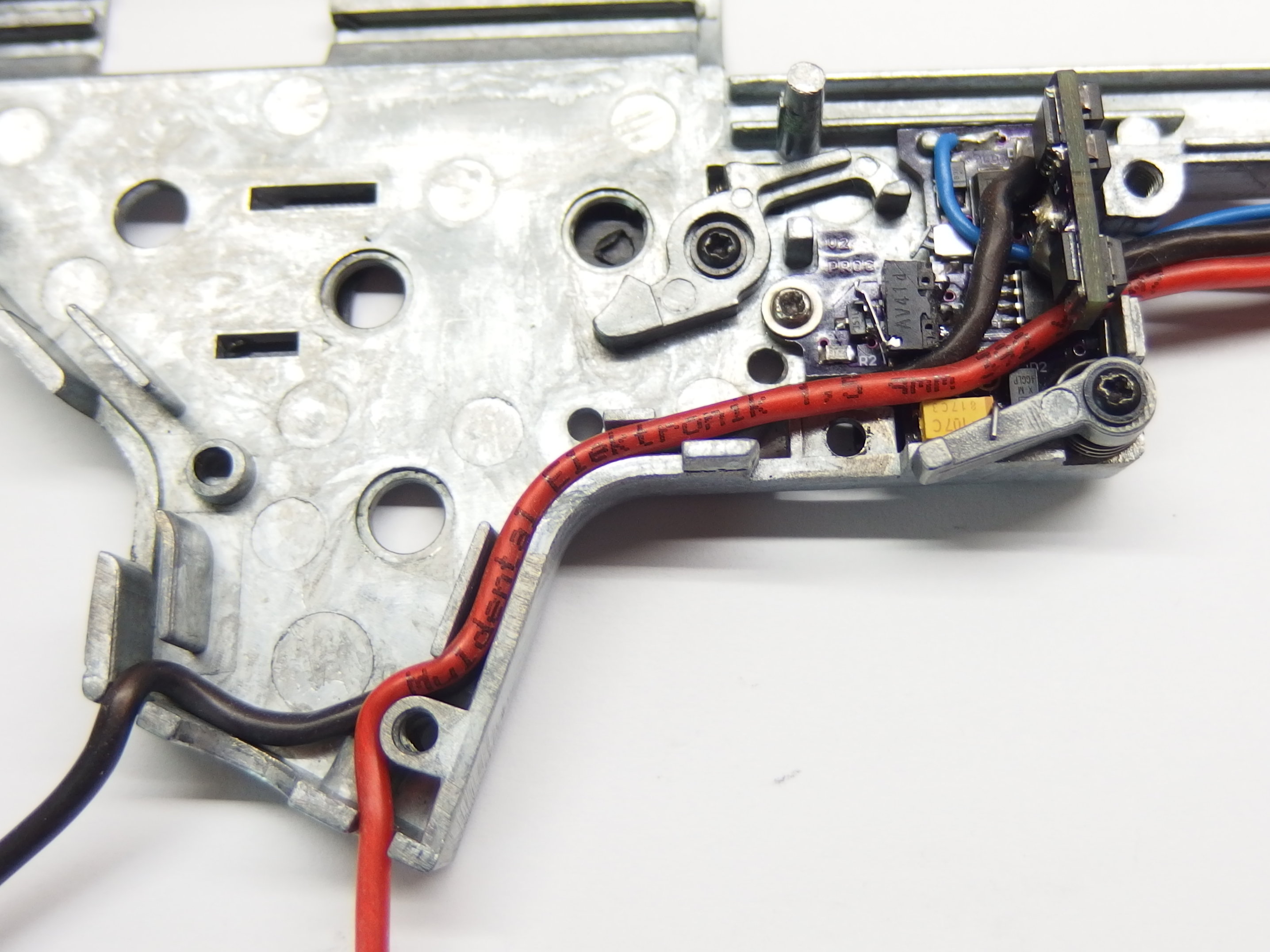 Zdá se mi, že mikrospínač je docela hodně posazený nízko. Tedy chtělo by ho to spíše osadit tak o 1mm až 1,5mm výše na desce. - Já osobně s tím mám velký problém u ASG mechaboxu s SHS přerušovačem - už jsme ho spiloval opravdu hodně a stále střílí na semi auto...