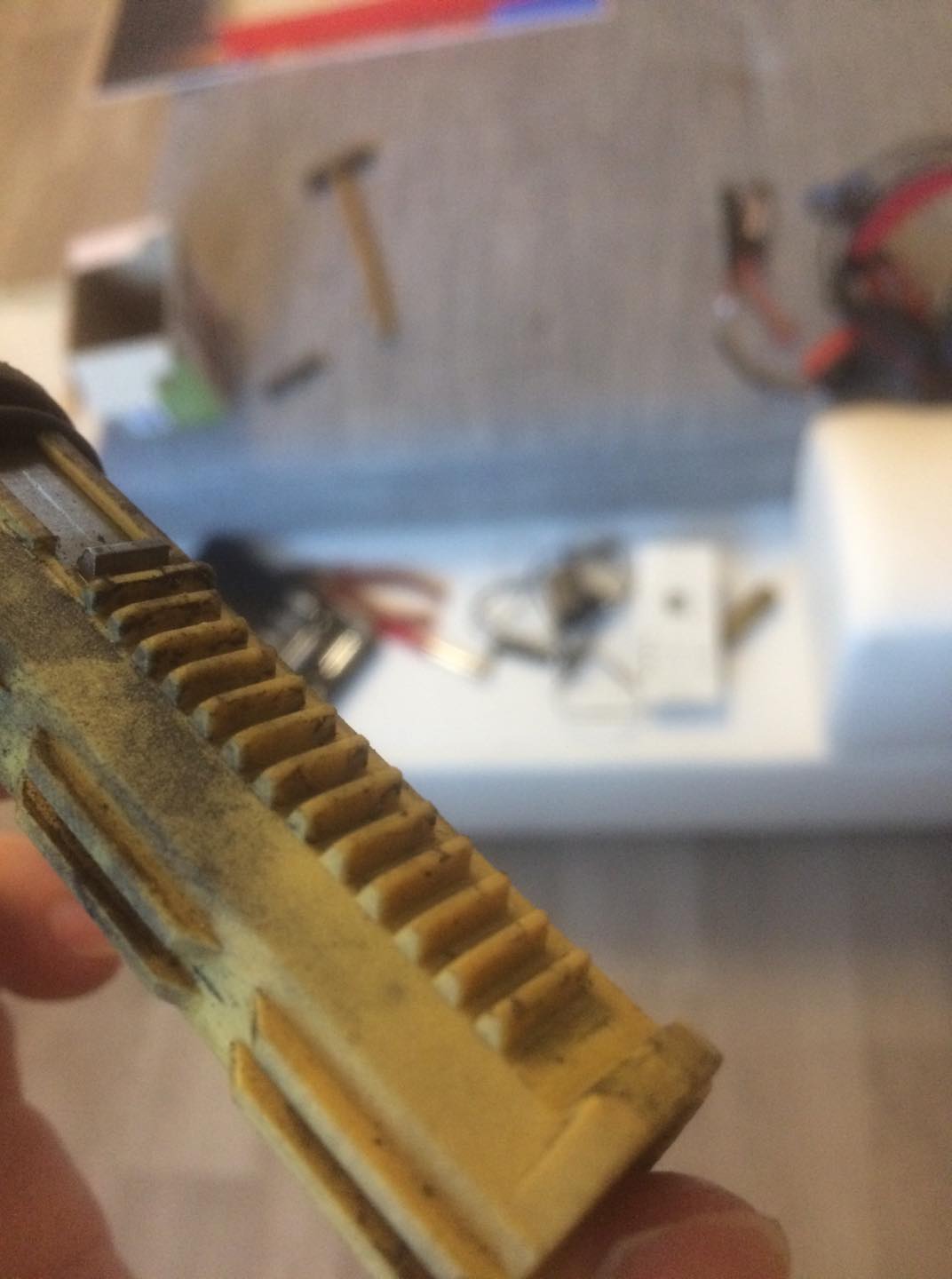 Jelikož jsem baterku dostal až týden po,tak jsem zjistil při připojení, že zbraň nestřílí v první řade jen cvakal motorek a nic se nedělo. Po rozmontování jsem zjistil,že píst byl celou dobu v zadu a mel stlačenou pružinu. ( posílám fotky do přílohy při prvním rozdělání) Podle mě byl píst v háji, tak jsem objednal "Precizní píst s ocelovým hřebenem, SHS" + shs hlavu pístu.