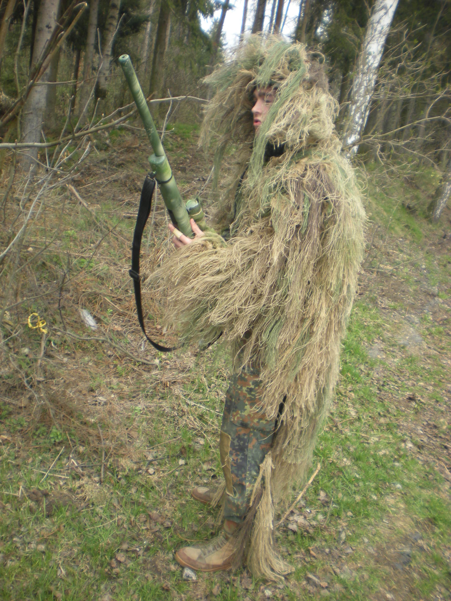 1) od kdy se leží uprostřed něčeho co vypadá jako louka? nebylo tam někde nějaké šikovnější místo? idealně takové co by na tebe házelo stín (nebo přes větve světlo / stín pruhy) 2) ta zelná na zbrani razí v té suché trávě docela dost. chtělo by to obrázek s vysokým rozlišením z větší dálky. ale takhle si umím představit že budeš v optice (nezmiňuju dalekohled) docela razit. to listí je docela srandovní, schválně jak dlouho tam vydrží při pohybu? nebylo by jednodušší tam navázat / nastrkat tu okolní suchou trávu? (ale ne, že vypleješ pul louky a za tebou "posekaná" brázda...) ale na něco zelenějšího to vypadá OK. tzn za pár týdnů jaro, a bude to jine kafe