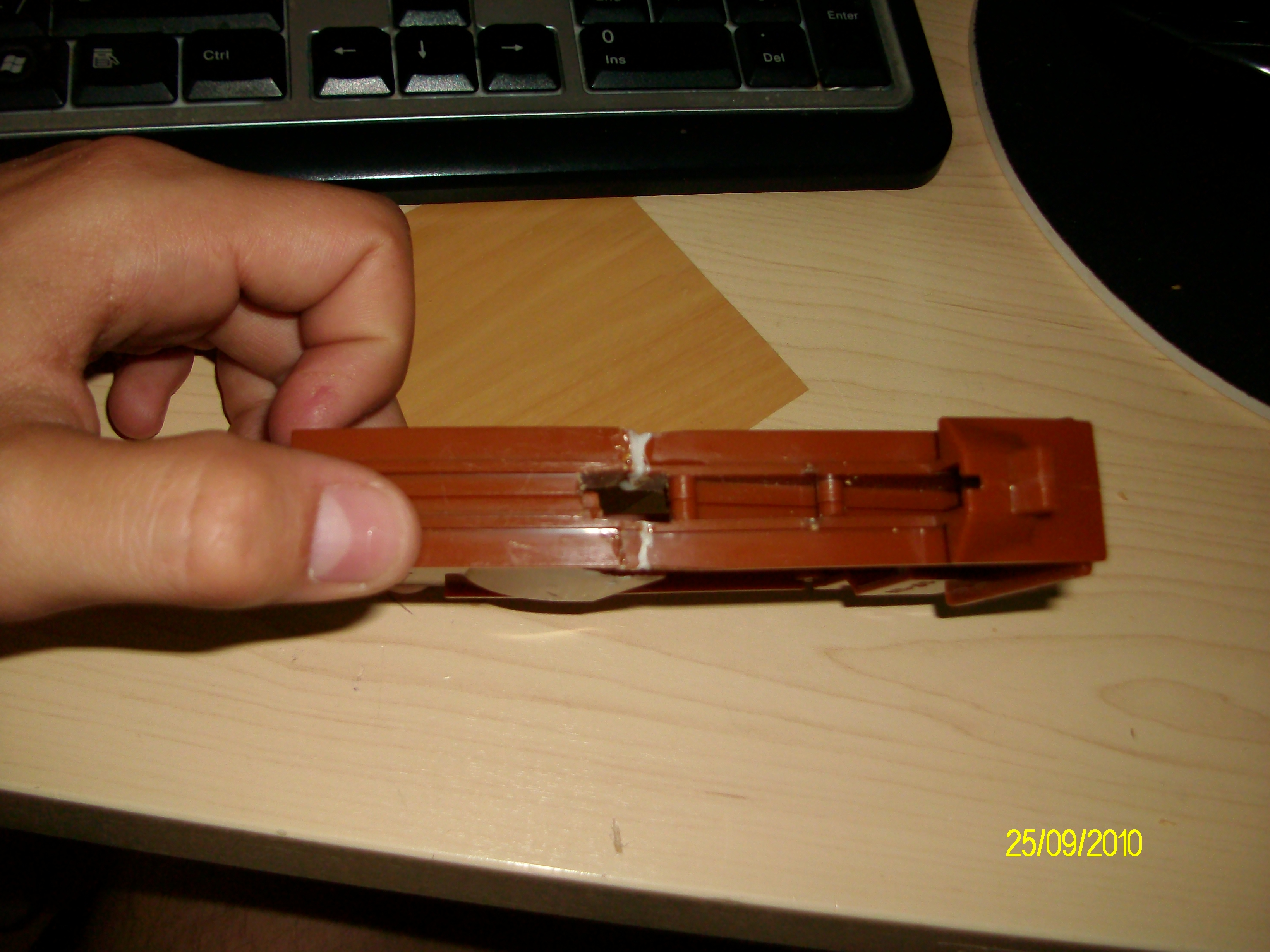 zdravím jelikož mam ted nožky na kaláškovi a zásobník původní oranžovej (74) je moc dlouhej. přemejšlim o zkrácení (viz foto). ale nevim čím pak zbylé půlky spojit jakým pojivem? v úvahu připadá chemoprenové lepidlo. musim pokuchat i vnitrek (je to tocák) bude nekde velký problém? ale je tam právě ta nedoléhající strana =(
